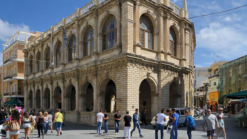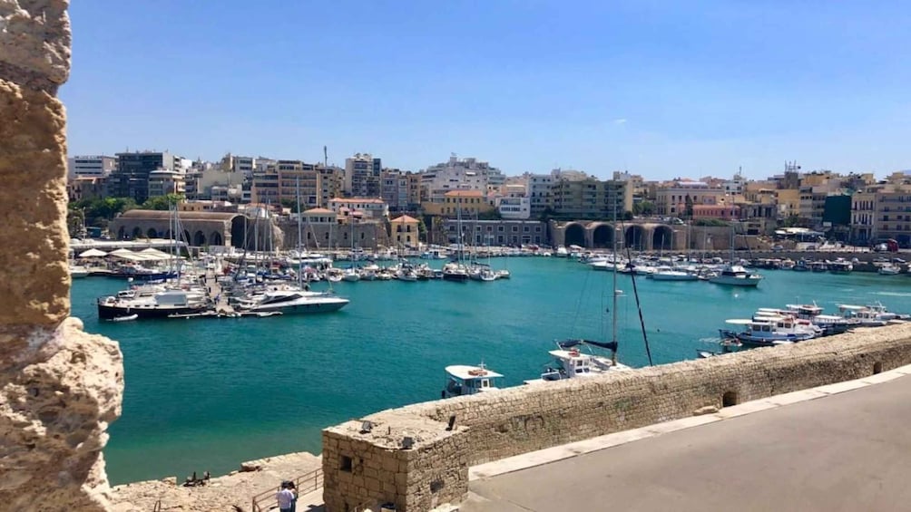 of one of a kind views to the Aegean sea from the walls of Heraklion, impressive murals related to the history of the island, graceful arches and other architectural elements.