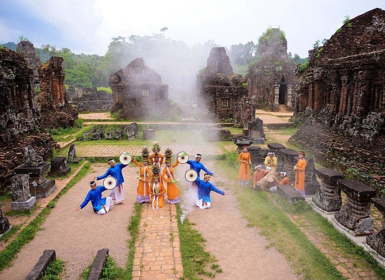 14:30 -16:30 : explore the My Son Sanctuary with a guide, enjoy the Cham Folk art dance show
