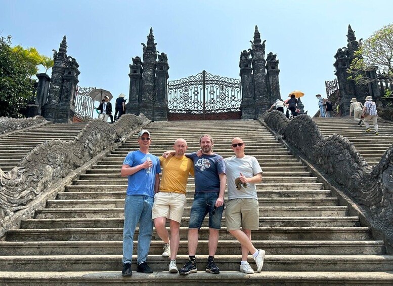 Continue to the Khai Dinh Tomb, a stunning blend of Vietnamese and European architecture. This mausoleum, dedicated to the 12th emperor of the Nguyen Dynasty, is perched on Chau Chu Mountain and is also recognised as a UNESCO World Heritage Site.