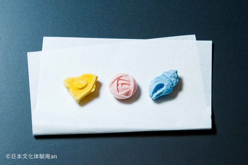 You can make Japanese dried-type Sweets (Ohigashi) made from traditional Japanese sugar called “Wasanbon”.
