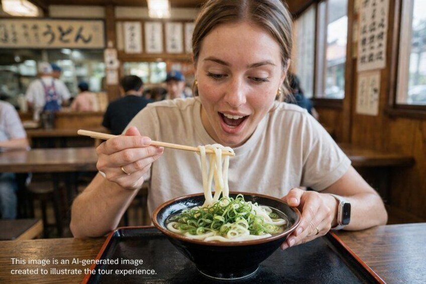 Marugame Udon Walk: Walk through Marugame and enjoy two local udon spots. Includes food allowance and insights from your guide.