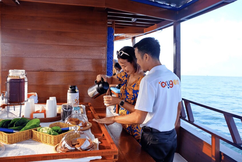 Step aboard a charming wooden boat and feel the gentle ocean breeze as our attentive crew provides full snorkelling equipment and a clear safety briefing. Sip freshly brewed coffee, enjoy a light breakfast, and take in uninterrupted ocean views as we cruise towards our first secluded bay arriving ahead of the crowds for a truly exclusive atmosphere.