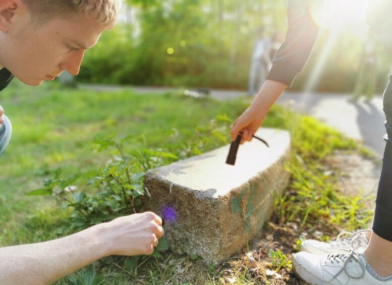 Dies ist ein offenes Outdoor-Escape-Spiel. Hier spielt ihr in einer Gruppe mit anderen Leuten. Ideal, um neue Leute kennenzulernen. Super für Einzelpersonen, Pärchen, Freunde. Wenn ihr nur unter Euch spielen wollt, wählt die Option „Private Tour“.