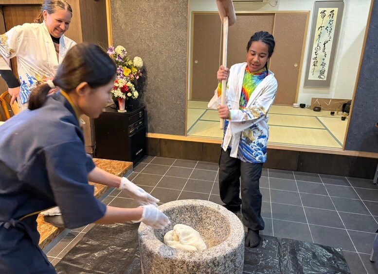 After that, you’ll get to try pounding mochi yourself.