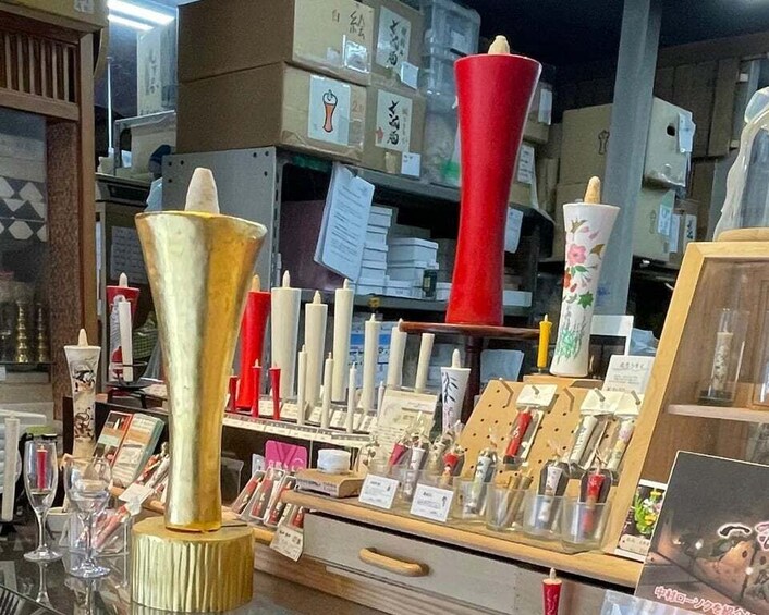 Discover Kyoto’s rich candle-making heritage at Nakamura Rousoku, one of the last remaining makers of Kyo-rousoku (Wa-rousoku)—traditional Japanese candles made from natural plant wax and washi paper. In this hands-on workshop, you’ll paint your own candle using vibrant pigments and fine brushes, guided by artisans who preserve generations of craftsmanship. These candles, known for their tall, steady flame and sustainable materials, are deeply tied to Japanese rituals and seasonal traditions.