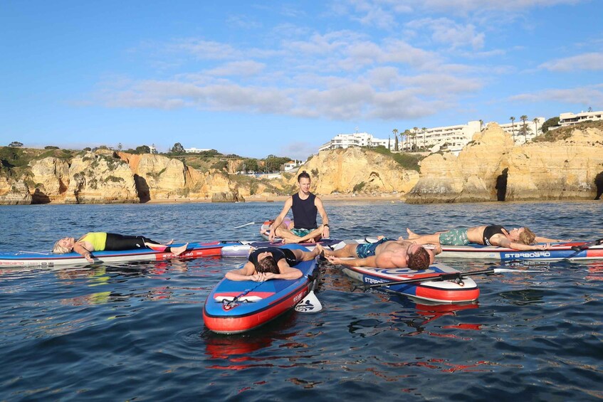 Lagos: Sunrise SUP Yoga Experience at Praia dos Estudantes