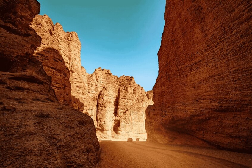 Later, climb the viewing platform to take in the panoramic grandeur of Huanghe Stone Forest: endless stone pillars spread across the land, complementing the winding Yellow River and golden desert. The guide will share stories of the stone forest as a key route on the ancient Silk Road, letting you feel its profound historical heritage while enjoying the scenery.