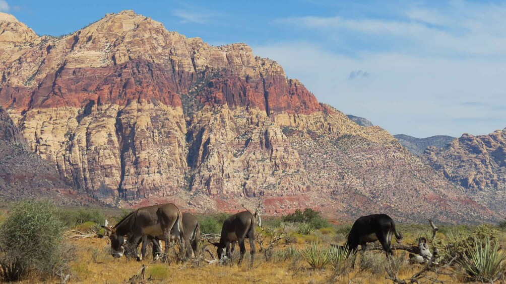 Red Rock Canyon in Clark County, Nevada, is about 15 miles west of Las Vegas (pickup starts from 7 AM), and is easily seen from the Las Vegas Strip. The conservation area showcases a set of large red rock formations, a collection of sandstone peaks and walls called the Keystone Thrust. The walls are up to 3,000-feet high, making them a popular hiking and rock-climbing destination. The highest point in the park is La Madre Mountain at 8,154 feet.