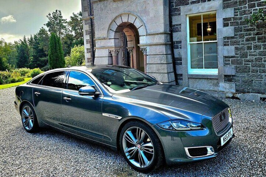 Jaguar XJ Autobiography: Luxury vehicle equipped with reclining seats, heating/cooling, massages, folding tables. Available for up to 3 passengers.
