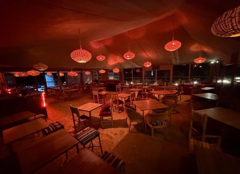 Choose this option to spend the night in a deluxe, air-conditioned tent with a private bathroom, and comfortable bed. It also includes a Berber dinner and breakfast