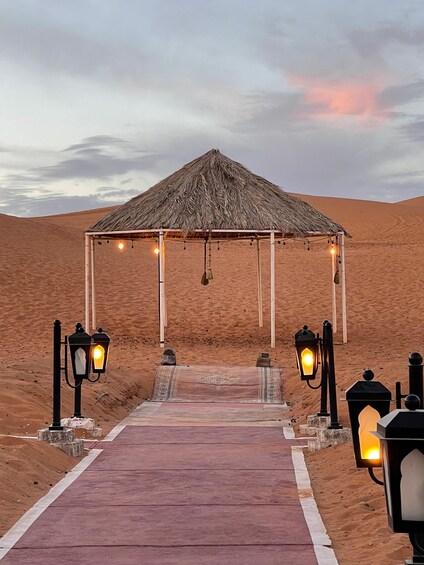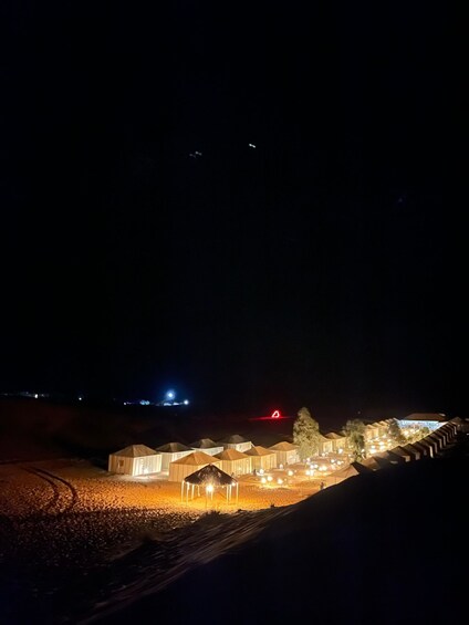 Choose this option to spend 2-nights in a luxury tent at a Merzouga desert camp. Enjoy a private tent with shower and bathroom, personalised service, traditional Moroccan meals, and an unforgettable desert experience under the starlit sky.