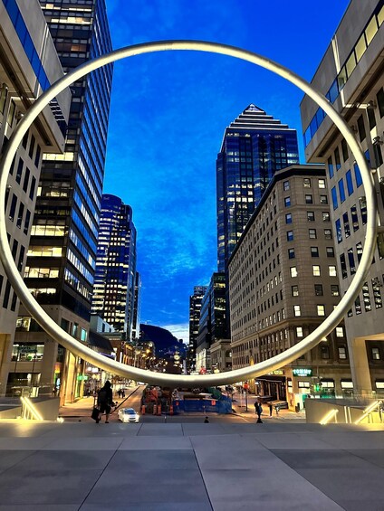 Pass through the World Trade Centre of Montreal – featuring a piece of the Berlin Wall and the majestic “God of the Sea” statue