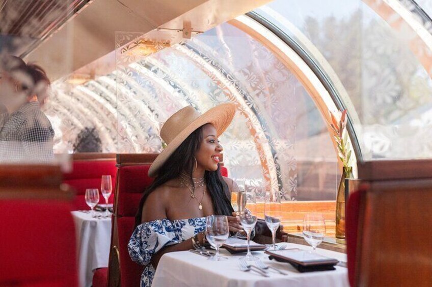 Embark on an immersive three-hour journey featuring panoramic 360-degree Napa Valley views, plush dining booths, and unforgettable photo opportunities with your travel companions. The Vista Dome experience takes place aboard one of only ten glass-domed Pullman observation cars ever built in 1952, offering a truly rare and elegant way to see the Valley.