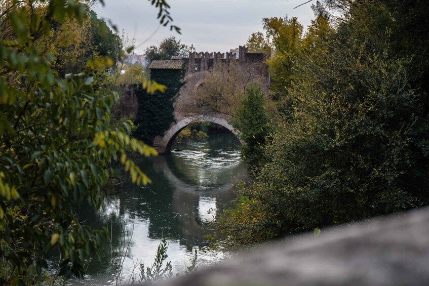 One of the first highlights of the tour is the Nomentano Bridge, one of the oldest Roman bridges located outside the Aurelian Wall. Here, you can admire the grandeur and beauty of Roman architecture, a living testament to the past. A little further on, the route encounters the remains of a small rural settlement from the Roman Republican period, with a villa equipped with a cistern for collecting water, a fascinating example of daily life in antiquity.