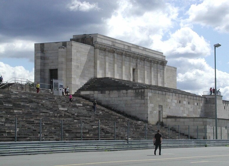 The Major War Criminals Trial was held before the International Military Tribunal in Nuremberg from November 20, 1945, to October 1, 1946. As a result of this trial, Courtroom 600 of the Nuremberg Palace of Justice gained worldwide notoriety. From 1946 to 1949, 12 “Subsequent Trials” were held in the same courtroom before exclusively U. S. American military tribunals. . Still until now, in the southeast corner of Nuremberg, the remains of structures located on the former Nazi Party Rally Grounds impress visitors with their immense proportions and stand as vivid testimony to the megalomania of the National Socialist regime. This area of 4 square miles was intended to be an impressive backdrop for the Nazi party rallies and serve to demonstrate their power not only to Germany, but to the entire world.