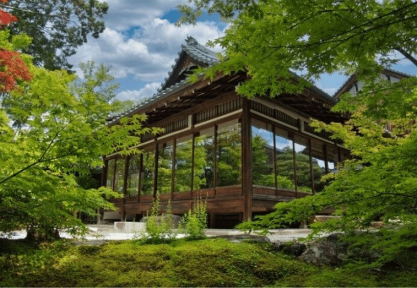 End your tour at Ginkaku-ji (Jisho-ji), a UNESCO World Heritage Site. Known as the counterpart to Kinkaku-ji, this temple embodies the beauty of simplicity and refinement, known as “wabi-sabi.” Spend 30 minutes soaking up the charm of the white sand garden “Ginsadan,” the moss-covered garden, and the serene study hall.