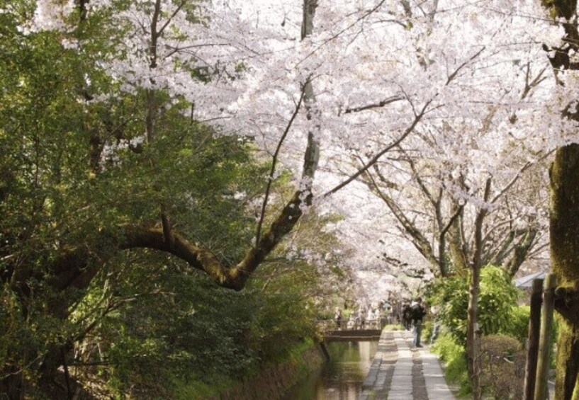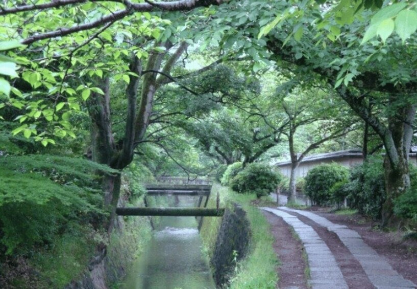 Walk north along the Philosopher's Path, a quiet and beautiful path lined with cherry trees and seasonal flowers along the canal. This path is said to have been walked by philosopher Kitaro Nishida as he pondered his thoughts. Stroll leisurely along this path, which offers a continuous view of Kyoto's scenery, from Eikando to Ginkaku-ji.