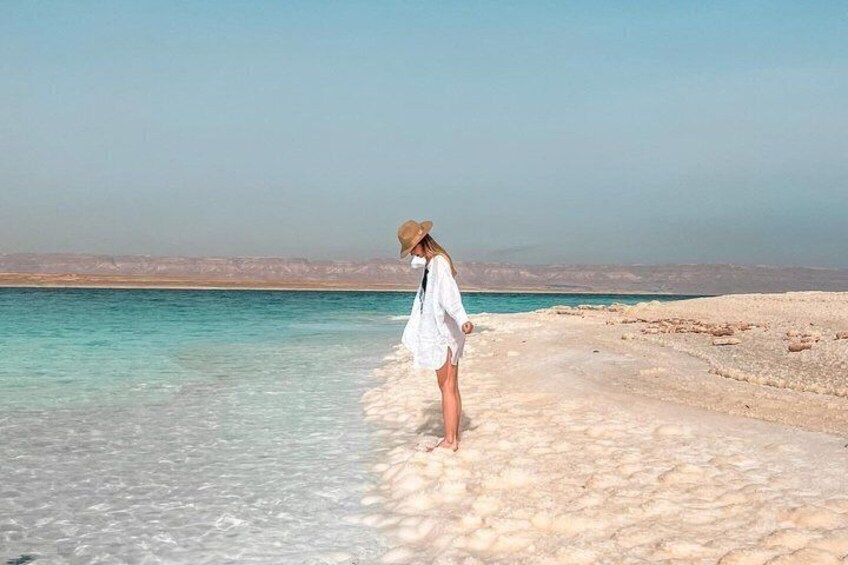 After exploring Petra, continue to the Salt Beach, where you can see striking natural salt formations along the shoreline and capture unforgettable photos in this one-of-a-kind setting.