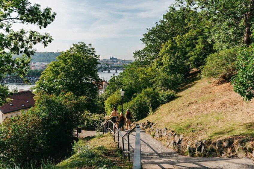 - Please note - there is one solid set of stairs to walk up to Vysehrad, the rest is mostly flat surface walking and down stairs. We walk around 3.5 km, the activity level for this experience is Moderate.