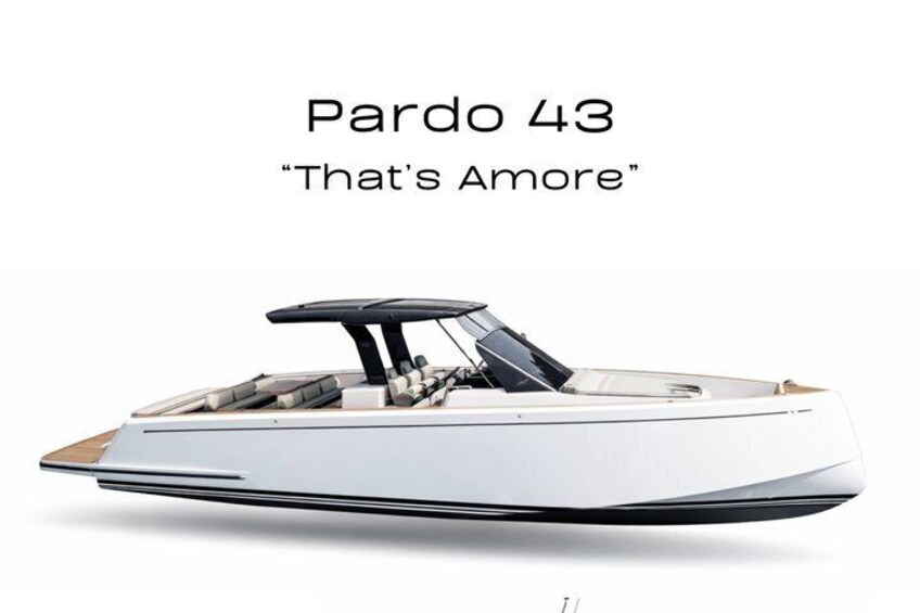 Pardo 43 That's Amore: A new 2024 model, 14 metres long. It is the most glamorous and high-performing boat in our fleet.