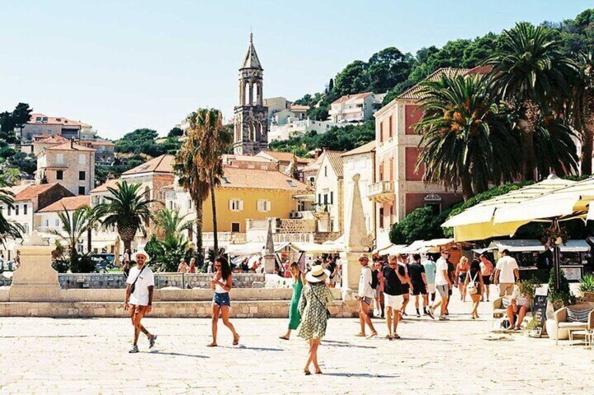 After experiencing the magical Blue Cave, exploring the charming town of Komiža, and enjoying a swim, we'll head to the island of Hvar for sightseeing. There, you can relax with a delicious lunch or stroll through the vibrant streets of Hvar Town.