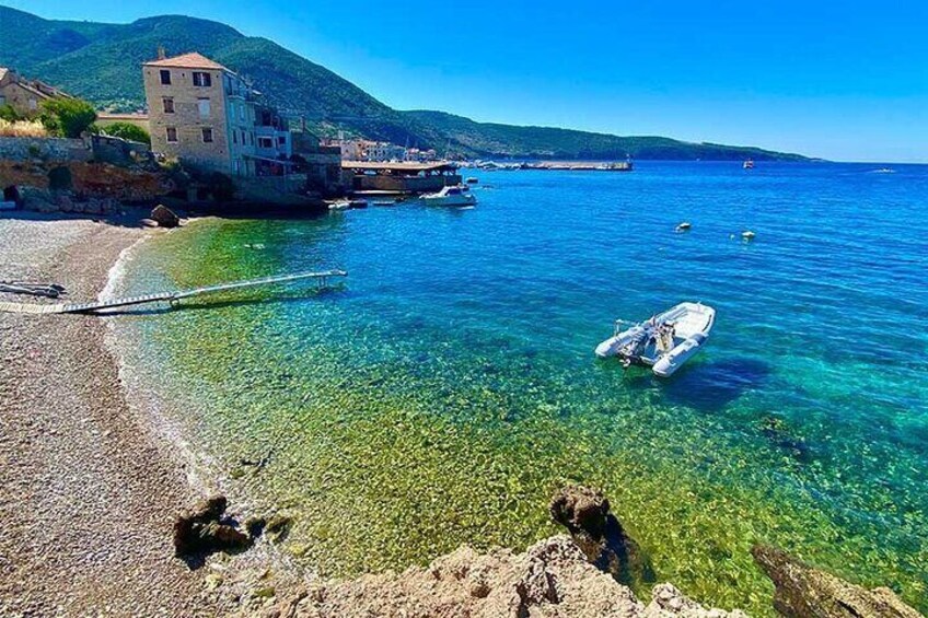 We'll cruise by speedboat and enjoy a breathtaking panoramic tour of the iconic Stiniva Bay—perfect for capturing unforgettable photos!