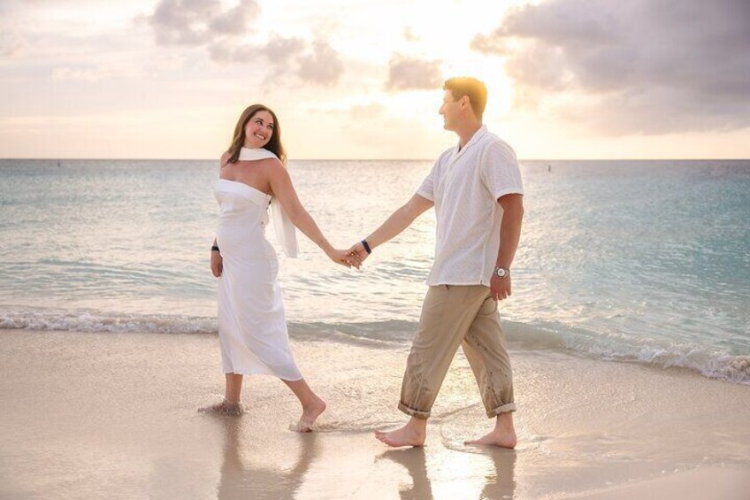 Duration: 1 hour: Enjoy a 1-hour sunset session with natural, candid shots capturing your best moments in Aruba’s golden glow.
