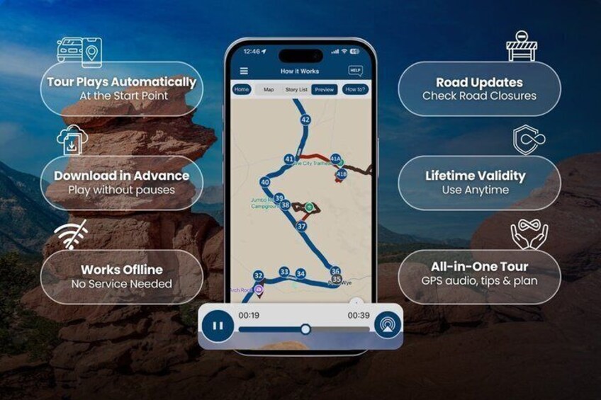 - Travel worry-free: Use the tour app anytime, on any day, and over multiple days. Start and pause the tour whenever you like, taking breaks and exploring side excursions at your own pace. Skip anything you don’t care about or explore bonus content for everything that interests you