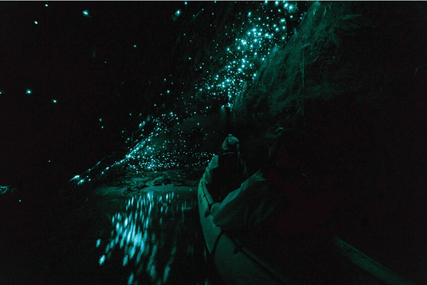 Refreshed and ready for more, we'll continue our paddle along the shoreline towards hidden caverns that come alive after dark. Inside these sheltered spaces, thousands of glow worms illuminate the walls, creating a surreal, star-like spectacle. Our guide will give you time to drift quietly beneath their shimmering light whilst answering all of your questions. We ensure our groups are small on purpose to make this one of the most intimate glow worm encounters in New Zealand.