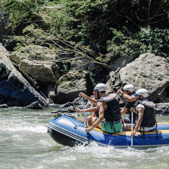 Start your river tour. During this experience, you'll encounter different difficulty levels and exciting moments. Along the way, you'll enjoy the beauty of the landscape and feel the adrenaline of the river's rapid movements.