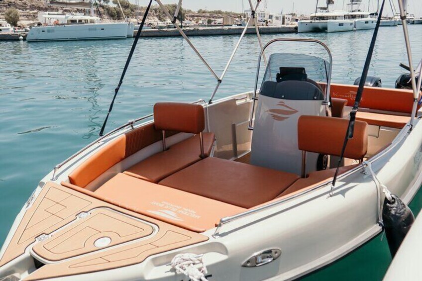 Santorini: License-Free Luxury Boat Rental – Half Day or Full Day