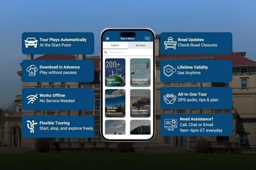 - Travel worry-free: Use the tour app anytime, on any day, and over multiple days. Start and pause the tour whenever you like, taking breaks and exploring side excursions at your own pace. Skip anything you don’t care about or explore bonus content for everything that interests you