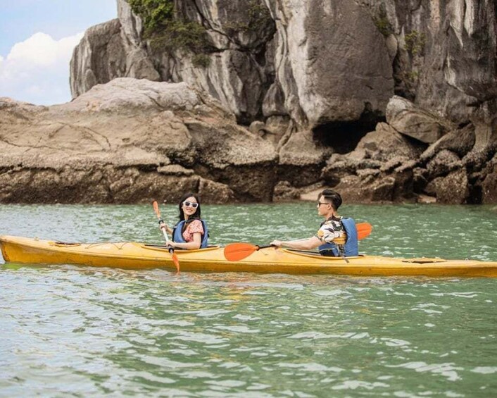 2- Experience the thrill on a private canoe tour to discover the magnificent beauty of Halong Bay.