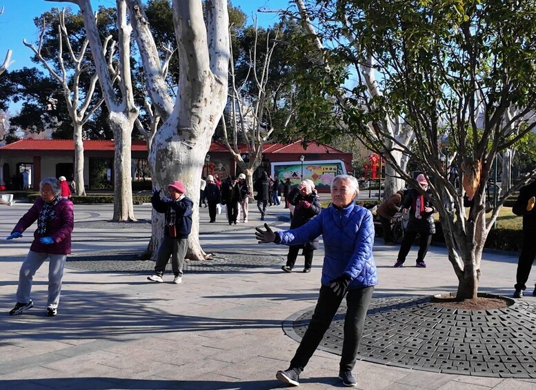 Begin your day in a lush local park, the true heart of Shanghai’s morning life. This is where the city’s vibrant “Silver Generation” gathers for their daily energy boost. You won’t just be watching; you’ll be part of it.