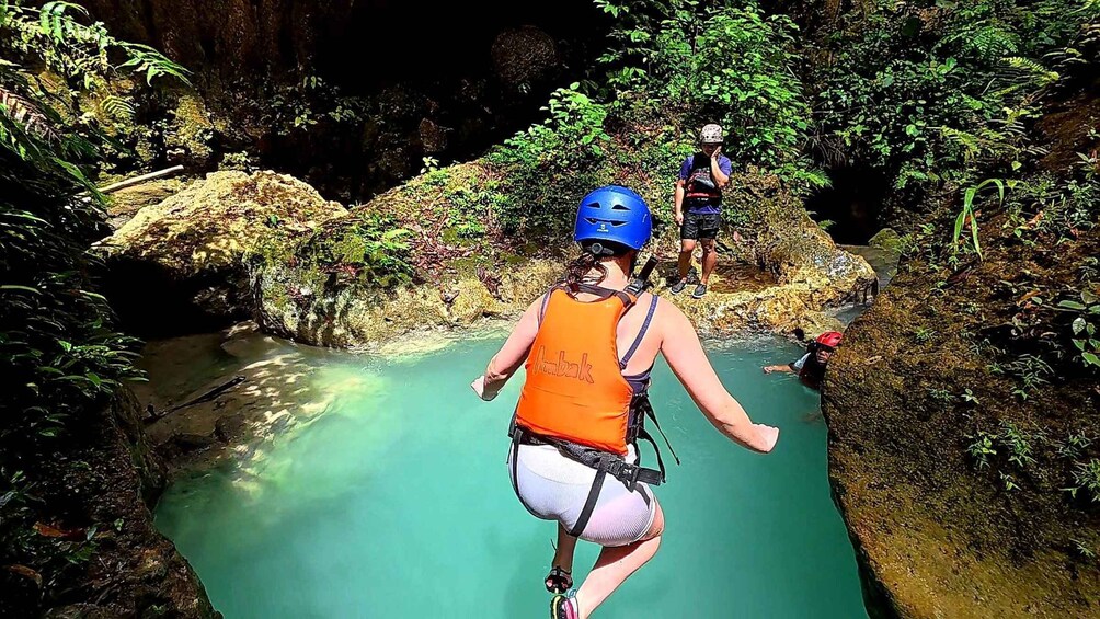 The 3–4 hour canyoneering adventure takes you through beautiful jungle canyons where you will jump, swim, slide down natural rock formations, and trek along turquoise rivers. The journey ends at the famous Kawasan Falls, known for its stunning blue waters where you can relax, swim, and take photos.