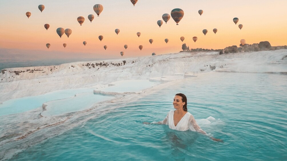 Upon arrival in Pamukkale, enjoy free time to explore the UNESCO-listed Hierapolis Ancient City and the famous white travertine terraces at your own pace. Walk barefoot across the warm calcium pools, explore ancient ruins, and take in panoramic views of the surrounding landscape. Guests who wish may also choose to swim in the thermal Cleopatra’s Pool (optional, entrance fee payable on-site).