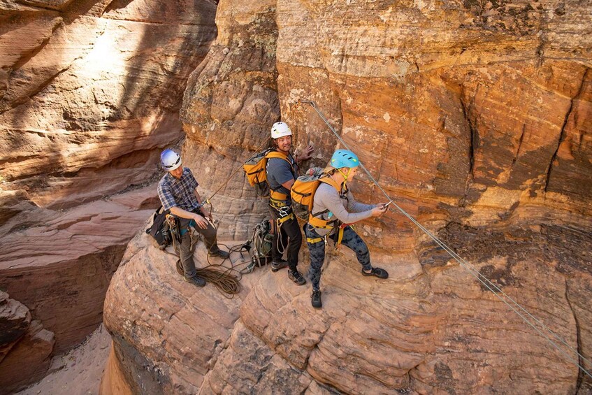 • Rappel down towering red sandstone cliffs with full gear and expert guidance