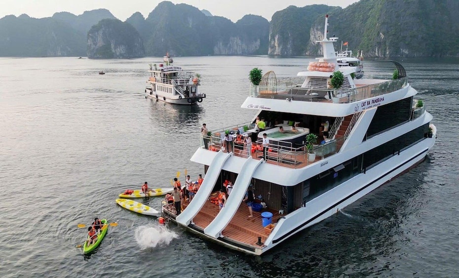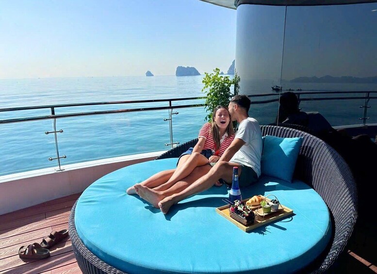 Cool off with a refreshing swim in the crystal-clear waters of Lan Ha Bay. Life jackets and towels are provided. If you prefer to relax, enjoy the breathtaking views from the sundeck.