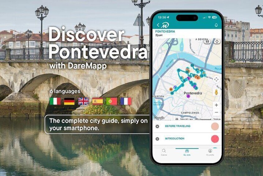 Visit Pontevedra at your own pace without groups or schedules with your mobile in Multilingual