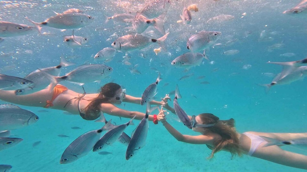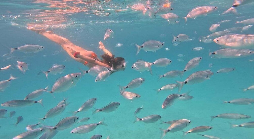 When we reach the island, the atmosphere shifts from high-energy to calm and inviting. You’ll have time to explore hidden beaches, walk along untouched rocky shores, or simply relax in the sun surrounded by nature. With crystal-clear water all around, this is the perfect place for swimming and snorkelling. We provide the gear so you can discover vibrant marine life and enjoy the peaceful underwater scenery at your own pace.